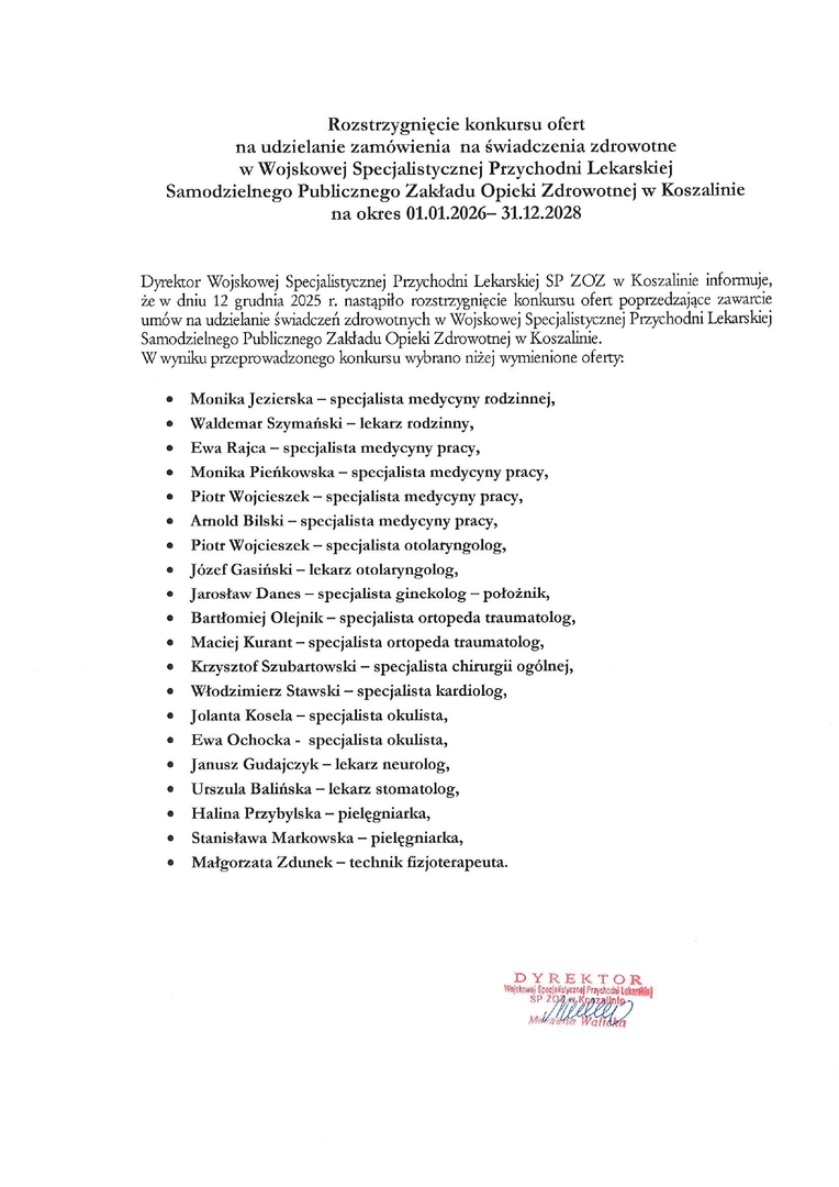 Wojskowa Specjalistyczna Przychodnia Lekarska Samodzielny Publiczny Zakład Opieki Zdrowotnej w Koszalinie
